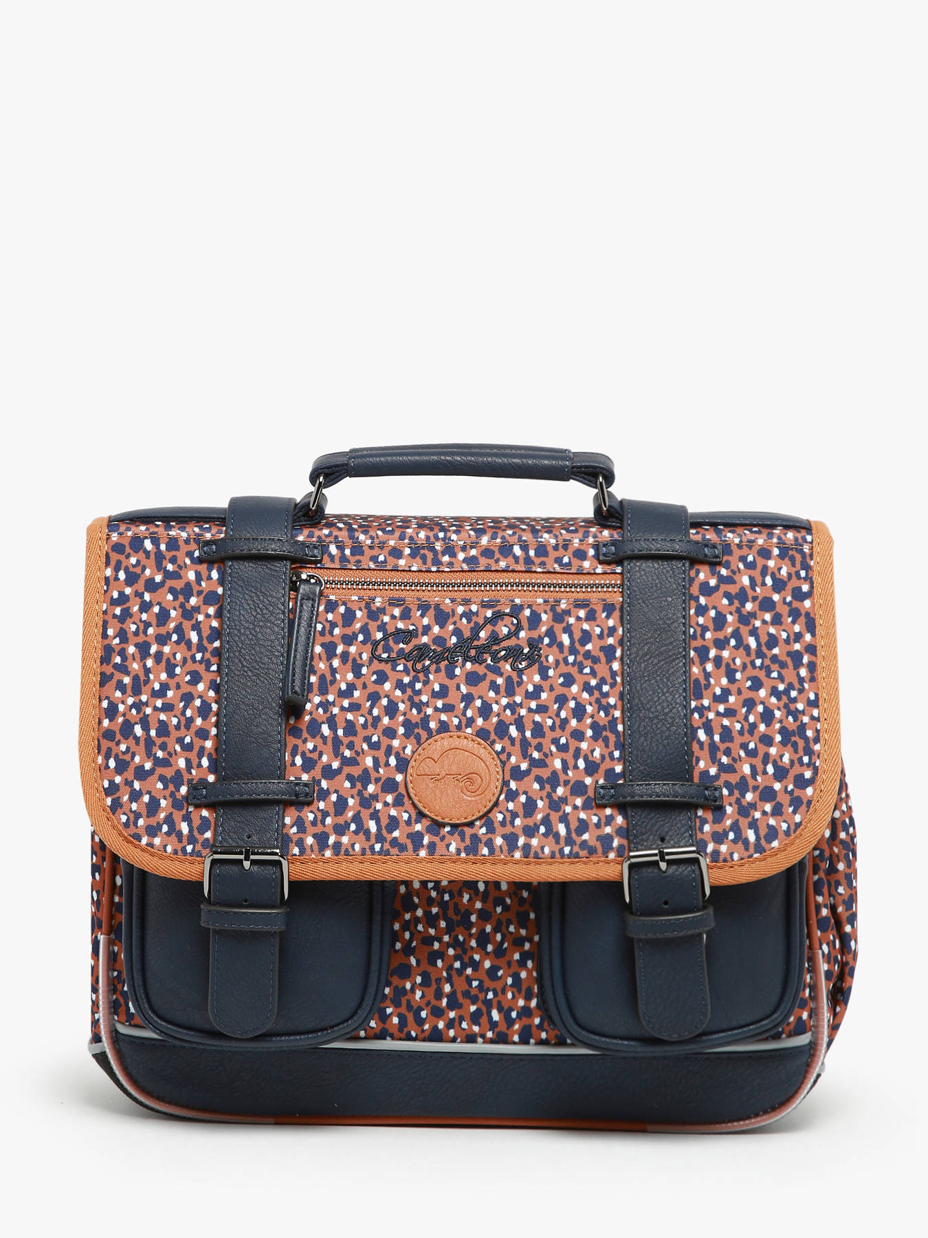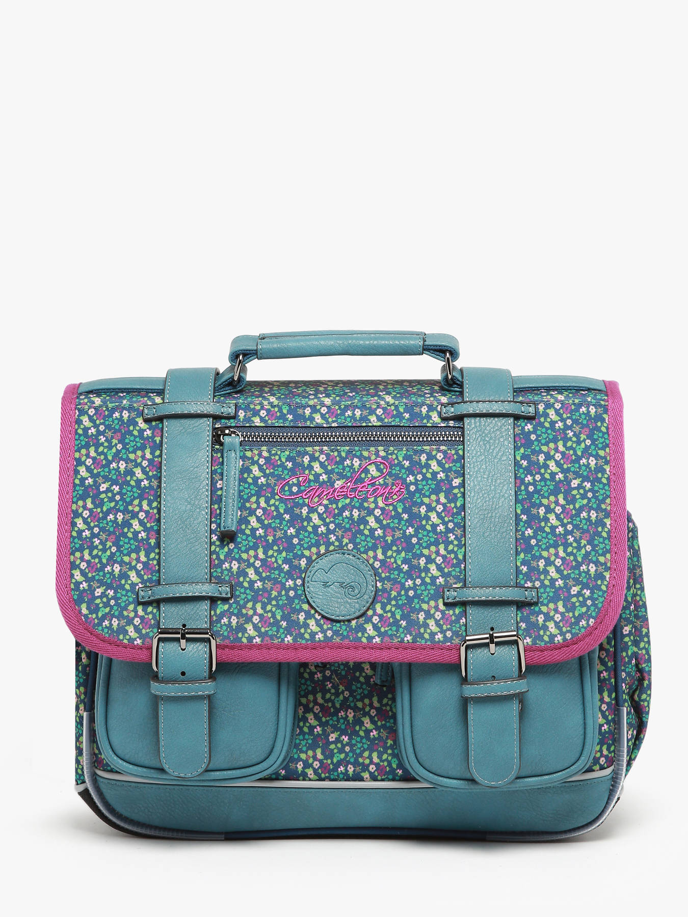 35 cm - 12 liter - 1.02 kg ~ Deze schooltas uit de Vintage collectie van het merk Caméléon heeft een breedte van 35 cm. Ideaal voor de kleuterklas en het eerste jaar van de basisschool! Dit model heeft een duidelijke vintage look, dankzij de twee voorvakjes en de riempjes met gesp. Dit model beschikt over twee compartimenten, die schriftjes (24x32 cm) en andere kleine spulletjes kunnen bevatten. Onder de overslagflap bevindt zich ook een uniek opbergvak, met daarin een gratis liniaal! De twee vakjes met rits vooraan zijn ideaal om een snack of zakdoek in op te bergen. Dit model beschikt ook over een naamlabel, en kan makkelijk gesloten worden dankzij een dubbel kliksysteem. Voor optimaal comfort zijn de rugzijde en schouderbandjes extra gewatteerd. Dankzij enkele reflectoren kan uw kind zich ook veilig in het verkeer begeven. Vintage op z'n mooist!