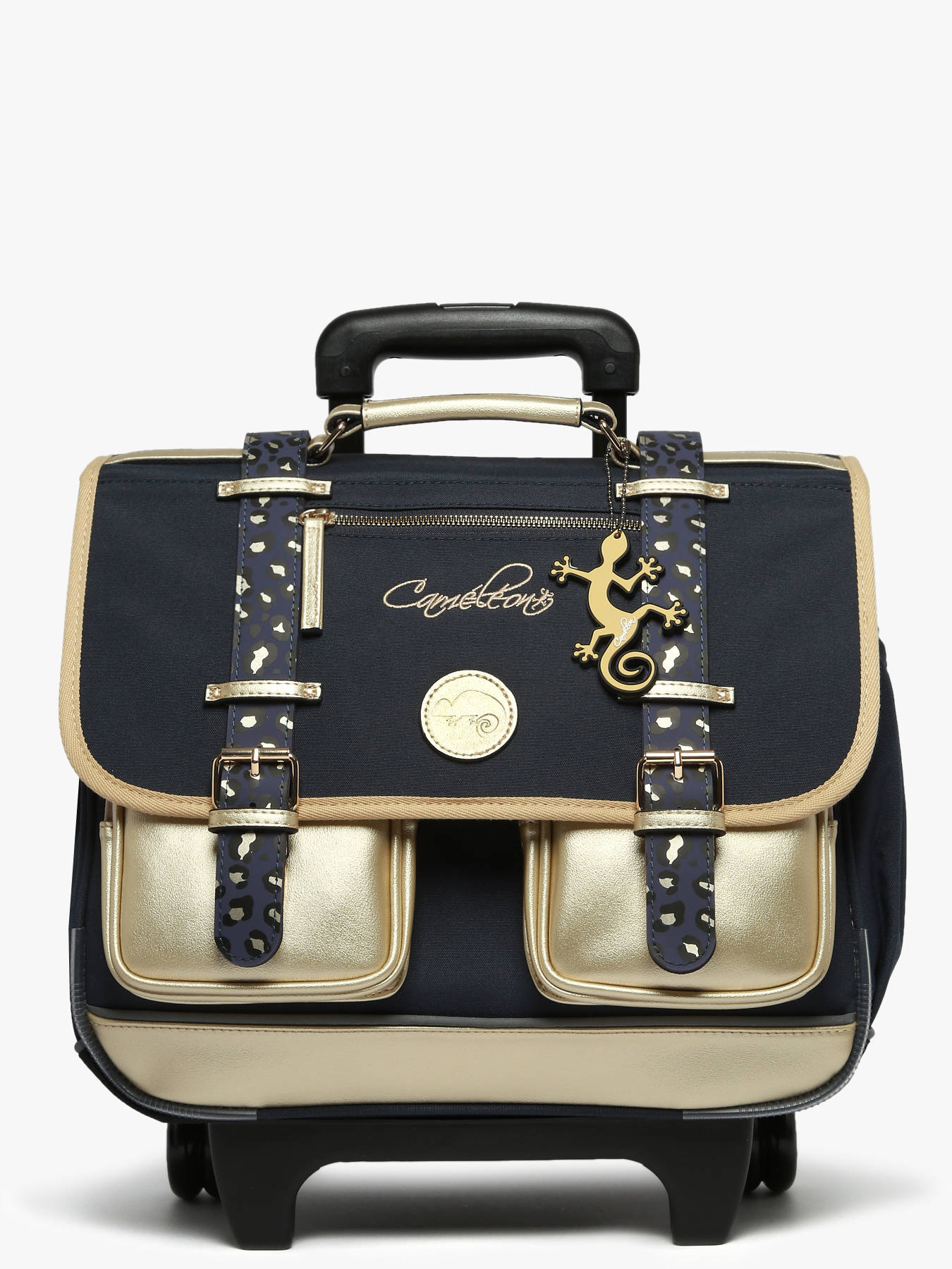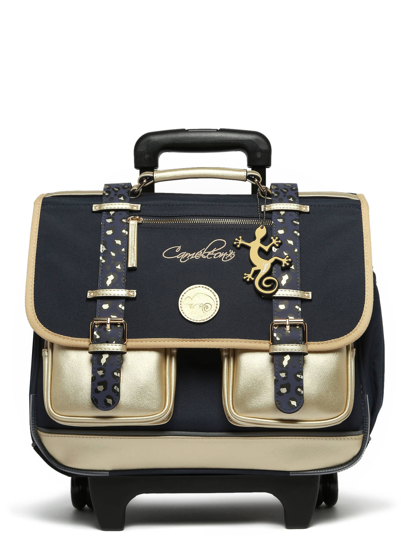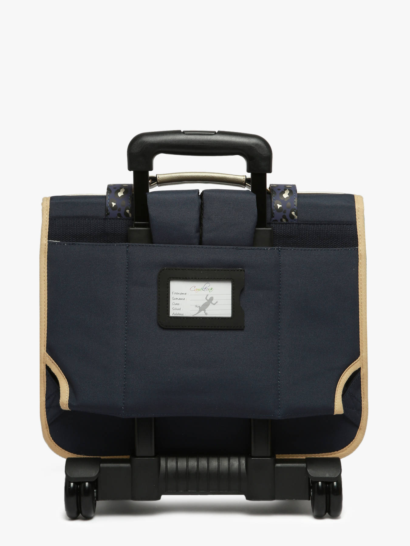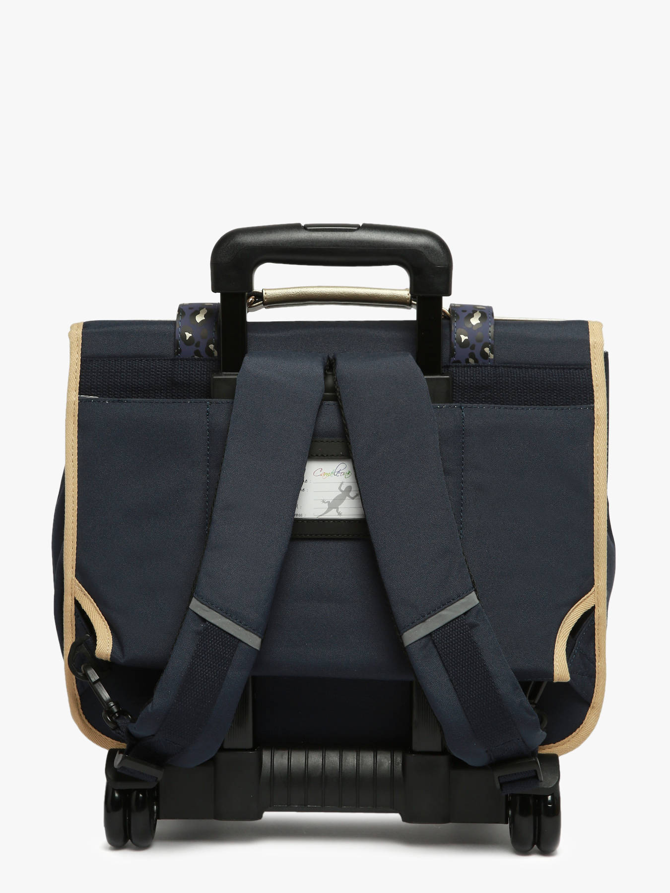38 cm - 15 liter - 2.44 kg ~ Deze boekentas op wieltjes uit de Vintage Fantasy collectie van het merk Caméléon heeft een breedte van 38 cm. Ideaal voor het 1ste, 2de en 3de leerjaar! Dit model heeft een duidelijke vintage look, dankzij de twee voorvakjes in lederlook en de riempjes met gesp. Deze boekentas beschikt over twee compartimenten, die schriften (24x32 cm) en schoolboeken van A4 formaat kunnen bevatten. Onder de overslagflap bevindt zich ook een uniek opbergvakje, met een gratis liniaal! De twee vakjes vooraan sluiten met rits, en zijn ideaal om een snack of andere kleine spulletjes in te stoppen. Dit model beschikt ook over een naamlabel aan de achterzijde, en kan makkelijk gesloten worden dankzij een dubbel kliksysteem. Voor optimaal comfort zijn de rugzijde en schouderbanden gewatteerd. Dankzij enkele reflectoren kan uw kind zich ook veilig in het verkeer begeven. De schouderriemen dienen te worden opgeborgen in het rugcompartiment bij gebruik van de wieltjes. Een extra flap schermt de wielen af wanneer de tas op de rug wordt gedragen.