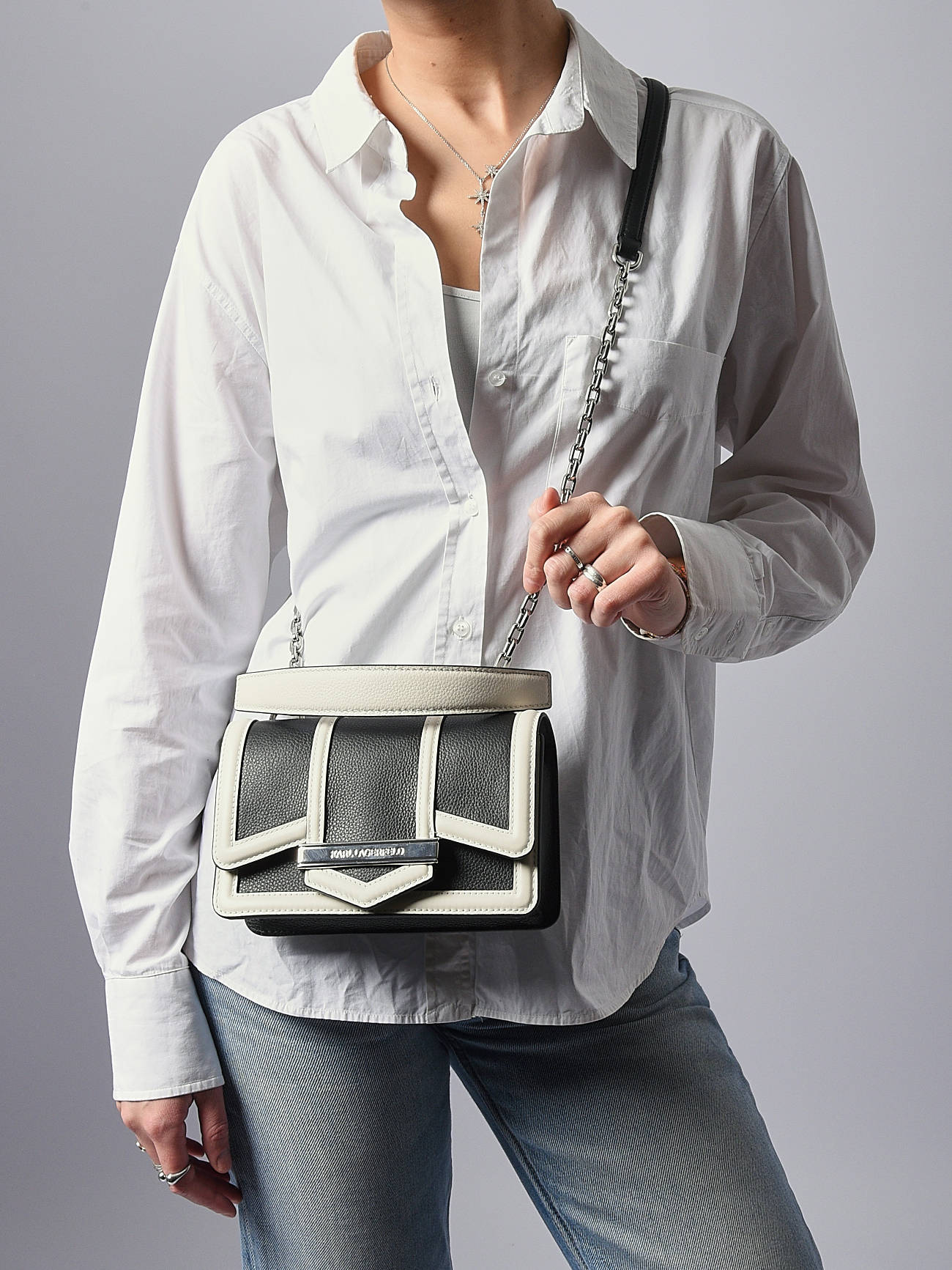 Kies voor moderne elegantie met de cross body tas K NOVA van KARL LAGERFELD, die een verfijnd ontwerp en praktische functionaliteit combineert; vervaardigd uit hoogwaardig rundleer onderscheidt hij zich door zijn natuurlijke textuur en stijlvolle uitstraling; de magnetische klep zorgt voor een snelle en veilige sluiting, terwijl het interieur bestaat uit een hoofdcompartiment en een eenvoudig vak om uw essentials te organiseren; de verstelbare bandoulière en de hengelhoogte van 8 cm bieden meerdere draagmogelijkheden: als cross body tas voor een casual look of in de hand voor een chiquere stijl; veelzijdig en verfijnd completeert deze cross body tas K NOVA al uw outfits, van dagelijks gebruik tot elegante uitstapjes, en geeft ze een vleugje moderne en geraffineerde stijl.
