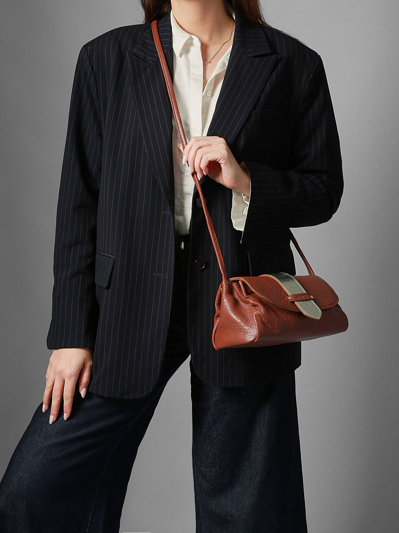 De AGNES-tas van ETRIER is vervaardigd uit Frans ""bubble"" schapenleer, maat M, met een flap voorzien van een drukknoop en een verstevigde bodem voor een optimale vormvastheid. De omkeerbare riempje, met een goudkleurige zijde en een zijde in bijpassend leer, wordt eenvoudig bevestigd dankzij twee kraagknopen en schuift in een achtervak dat speciaal hiervoor wordt ontworpen. De met leer gevoerde binnenkant bevat drie compartimenten, waaronder een centraal ritsvak, zodat uw persoonlijke spullen gemakkelijk kunnen worden georganiseerd. Het ETRIER-logo, in natuurlijk leer, is versierd met een klein Frans vlaggetje dat een elegante en onderscheidende vleugje toevoegt. De schouderriem is bij levering ingesteld op 65 cm, maar de lengte kan eenvoudig worden aangepast dankzij een discrete knoop aan de binnenkant van de tas. U hoeft enkel te trekken, de knoop los te maken, de lengte aan te passen en vervolgens de knoop opnieuw te leggen voor een perfect draagcomfort.