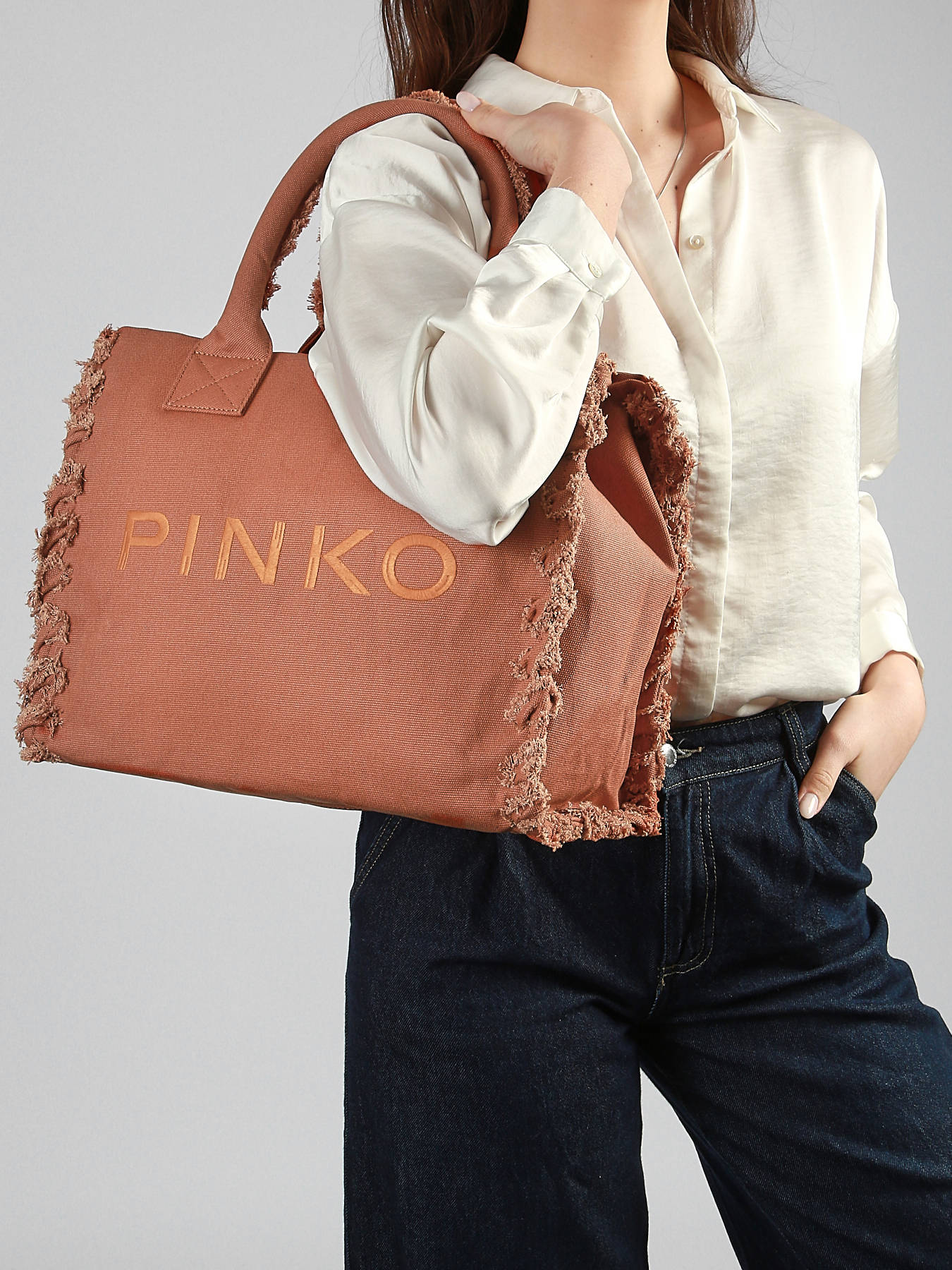 Een stijlvolle Handtas logo shopper katoen uit de Logo shopper collectie van het merk Pinko, die u in de hand kunt dragen. Keuze bij de vleet!