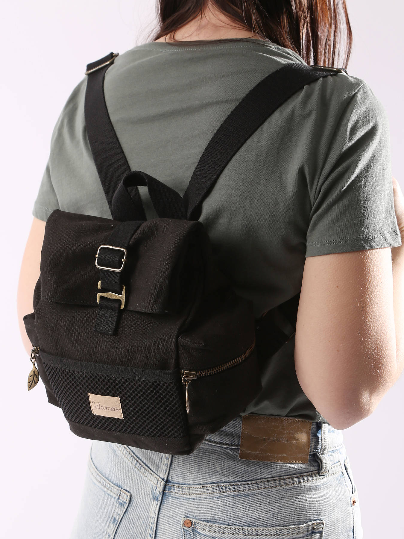 Deze rolltop rugzak uit de Narcisse collectie van Woomen is het perfecte accessoire voor de urban professional. Deze rugzak, gemaakt uit gerecycleerd katoen, biedt het perfecte volume voor jouw essentiële spulletjes. Naast een compact hoofdcompartiment zijn er tal van opbergvakjes voorzien, zoals het mesh vakje aan de voorzijde. De ritshangertjes, in de vorm van een blaadje, zijn een knipoog naar het ecologische concept van het merk. De schouderbanden zijn gewatteerd én verstelbaar, voor een optimaal gebruikscomfort. Bovendien gebruikt het merk Woomen geen materialen van dierlijke oorsprong, en is daarom vegan gecertifieerd door het label EVE Vegan. Ook probeert het merk z'n ecologische voetafdruk tot een minimum te herleiden, door het gebruik van ecologische en/of gerecycleerde materialen. Woomen kiest ook voor transport met een lage CO²-uitstoot.