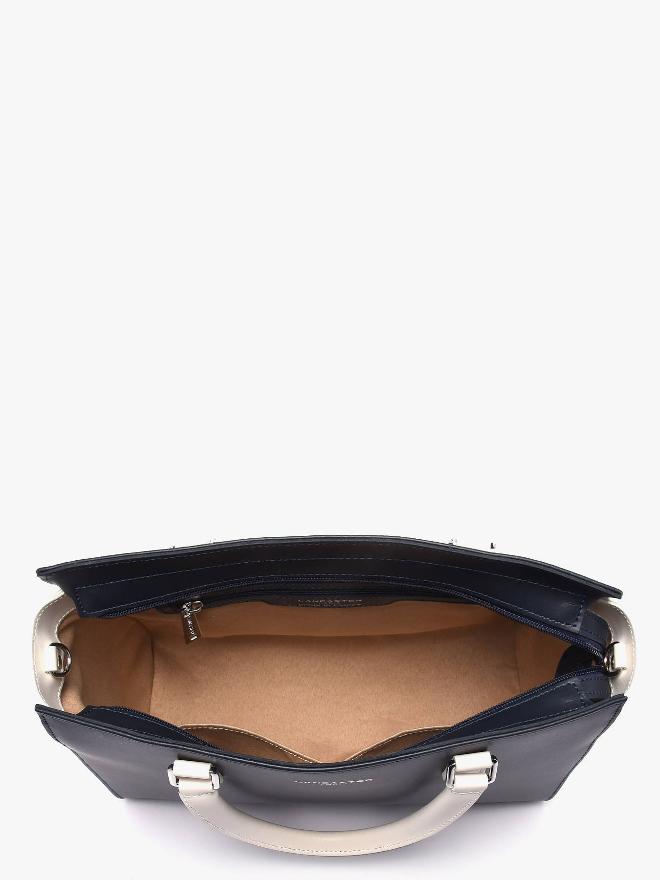 Een stijlvolle trapezetas uit de 'Constance' collectie van Lancaster. z'n eigentijdse vorm en gecombineerde kleuren zullen u zeker weten te bekoren! De tas opent met rits, en onthult een ruim hoofdcompartiment met verschillende opbergvlakjes. Dankzij de bijgeleverde schouderriem kunt u dit model niet enkel in de hand, maar ook over de schouder dragen.